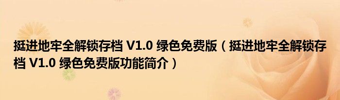 导读 大家好,关于挺进地牢全解锁存档 V1 0 绿色免费版,挺进地牢全解锁存档 V1 0 绿色免费版功能简介这个很多人还不知道,小勒来为大家解答以