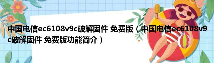 中国电信ec6108v9c破解固件 免费版(中国电信ec6108v9c破解固件 免费版功能简介)