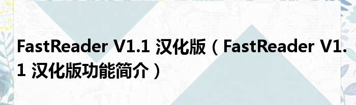 FastReader V1.1 汉化版(FastReader V1.1 汉化版功能简介)