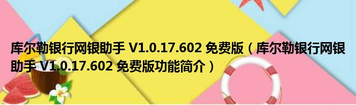 库尔勒银行网银助手 V1.0.17.602 免费版(库尔勒银行网银助手 V1.0.17.602 免费版功能简介)
