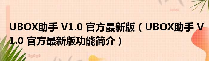 UBOX助手 V1.0 官方最新版(UBOX助手 V1.0 官方最新版功能简介)