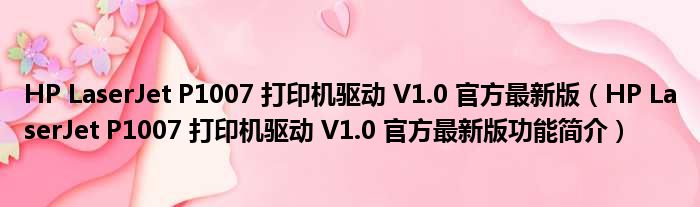 HP LaserJet P1007 打印机驱动 V1.0 官方最新版(HP LaserJet P1007 打印机驱动 V1.0 官方最新版功能简介)
