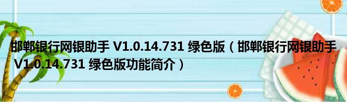 邯郸银行网银助手 V1.0.14.731 绿色版(邯郸银行网银助手 V1.0.14.731 绿色版功能简介)