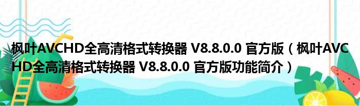 枫叶AVCHD全高清格式转换器 V8.8.0.0 官方版(枫叶AVCHD全高清格式转换器 V8.8.0.0 官方版功能简介)