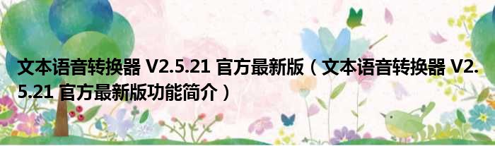 导读 大家好,关于文本语音转换器 V2 5 21 官方最新版,文本语音转换器 V2 5 21 官方最新版功能简介这个很多人还不知道,小勒来为大家解答以上