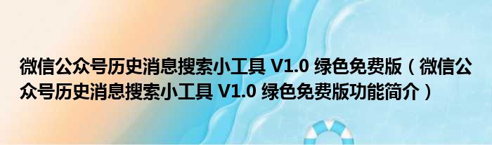 微信公众号历史消息搜索小工具 V1.0 绿色免费版(微信公众号历史消息搜索小工具 V1.0 绿色免费版功能简介)