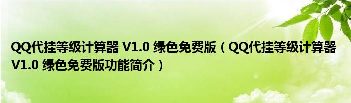 QQ代挂等级计算器 V1.0 绿色免费版(QQ代挂等级计算器 V1.0 绿色免费版功能简介)