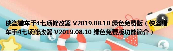侠盗猎车手4七项修改器 V2019.08.10 绿色免费版(侠盗猎车手4七项修改器 V2019.08.10 绿色免费版功能简介)