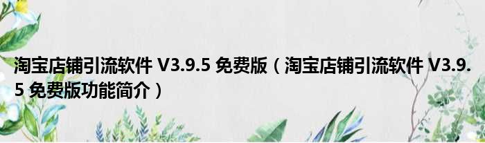淘宝店铺引流软件 V3.9.5 免费版(淘宝店铺引流软件 V3.9.5 免费版功能简介)