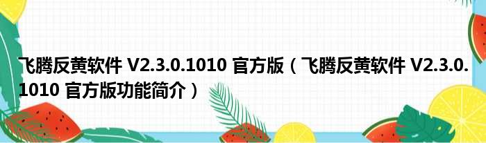 导读 大家好,关于飞腾反黄软件 V2 3 0 1010 官方版,飞腾反黄软件 V2 3 0 1010 官方版功能简介这个很多人还不知道,小勒来为大家解答以上的问