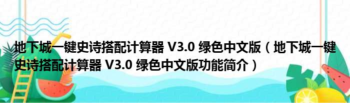地下城一键史诗搭配计算器 V3.0 绿色中文版(地下城一键史诗搭配计算器 V3.0 绿色中文版功能简介)