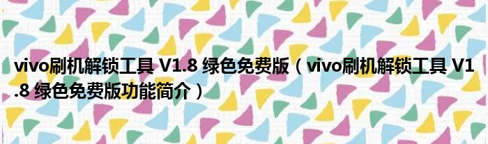 vivo刷机解锁工具 V1.8 绿色免费版(vivo刷机解锁工具 V1.8 绿色免费版功能简介)