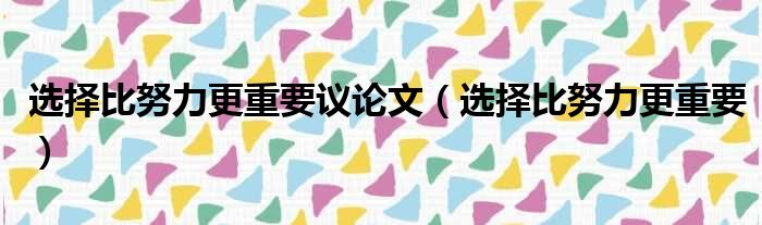 大家好,今天小六子来为大家解答以下的问题,关于选择比努力更重要议论文,选择比努力更重要这个很多人还不知道,现在让我们一起来看看吧!