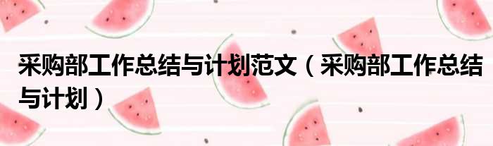 采购部工作总结与计划范文(采购部工作总结与计划)
