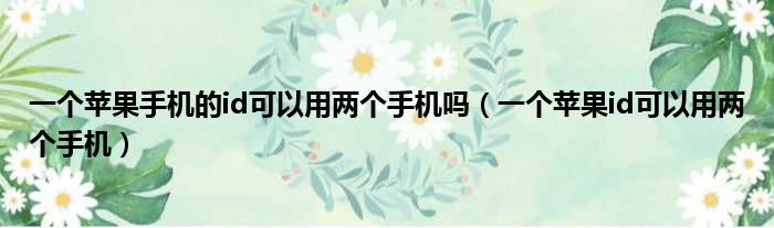一个苹果手机的id可以用两个手机吗(一个苹果id可以用两个手机)
