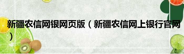 导读 大家好,今天小六子来为大家解答以下的问题,关于新疆农信网银网页版,新疆农信网上银行官网这个很多人还不知道,现在让我们一起来看看吧!1