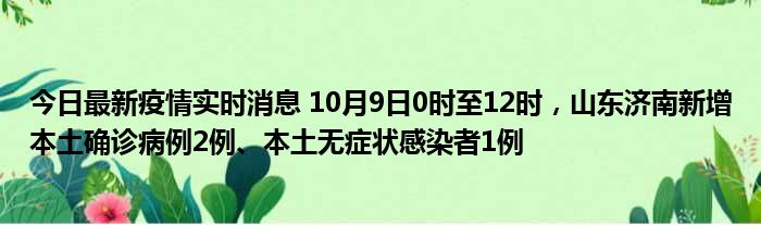 今日最新疫情实时消息 10月9日0时至12时,山东济南新增本土确诊病例2例、本土无症状感染者1例