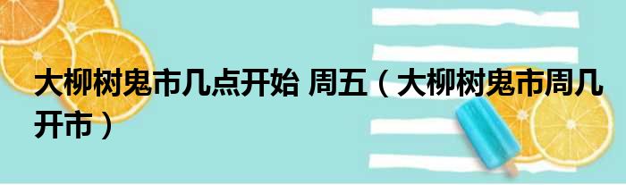 大柳树鬼市几点开始 周五(大柳树鬼市周几开市)