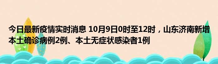 今日最新疫情实时消息 10月9日0时至12时,山东济南新增本土确诊病例2例、本土无症状感染者1例