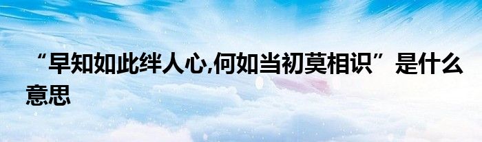 “早知如此绊人心,何如当初莫相识”是什么意思
