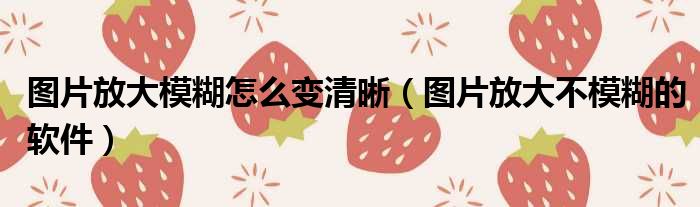 导读 大家好,今天小六子来为大家解答以下的问题,关于图片放大模糊怎么变清晰,图片放大不模糊的软件这个很多人还不知道,现在让我们一起来看看