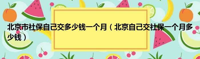 北京市社保自己交多少钱一个月(北京自己交社保一个月多少钱)