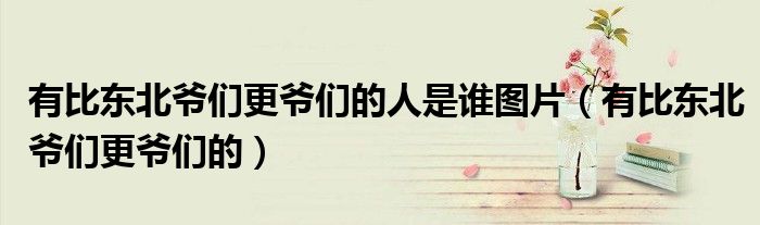 导读 大家好,今天小六子来为大家解答以下的问题,关于有比东北爷们更爷们的人是谁图片,有比东北爷们更爷们的这个很多人还不知道,现在让我们一