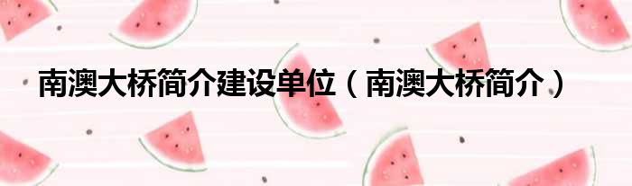 导读 大家好,今天小六子来为大家解答以下的问题,关于南澳大桥简介建设单位,南澳大桥简介这个很多人还不知道,现在让我们一起来看看吧!1、南澳