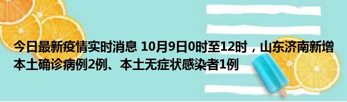 今日最新疫情实时消息 10月9日0时至12时,山东济南新增本土确诊病例2例、本土无症状感染者1例