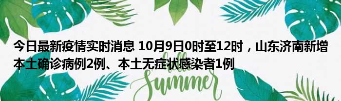 今日最新疫情实时消息 10月9日0时至12时,山东济南新增本土确诊病例2例、本土无症状感染者1例