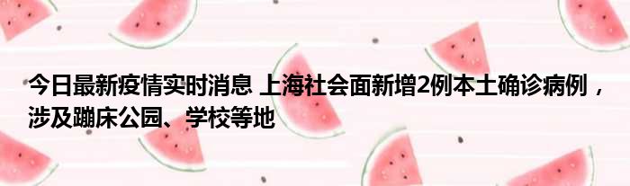 您的位置:首页 >房产频道 > 综合精选 > 今日最新疫情实时消息 上海社会面新增2例本土确诊病例,涉及蹦床公园、学校等地 2022-10-09 23:18:05 • 来源: 导读 免责声明:本文由用户上传,如有侵权请联系删除! 上一篇:吃生南瓜子的坏处和好处(吃生南瓜子的坏处) 下一篇:张朝珍结局(张朝珍)