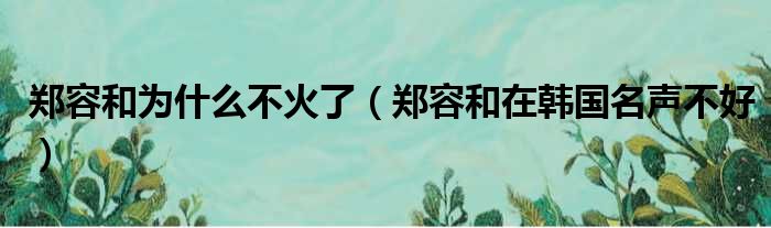 郑容和为什么不火了(郑容和在韩国名声不好)