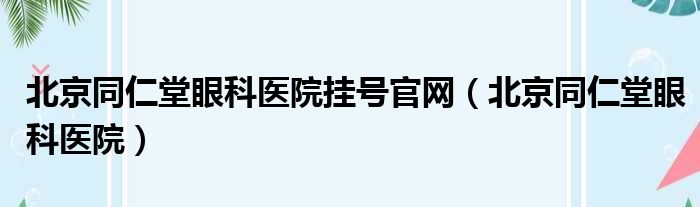 北京同仁堂眼科医院挂号官网(北京同仁堂眼科医院)