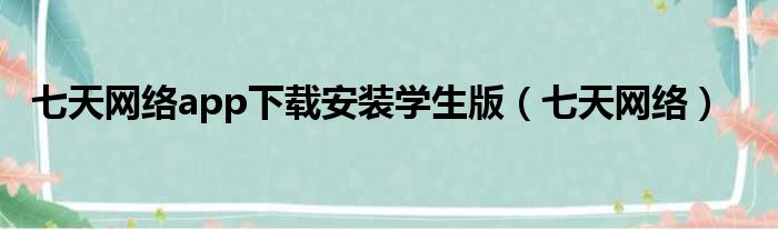 七天网络app下载安装学生版(七天网络)