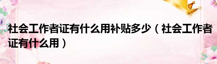 社会工作者证有什么用补贴多少(社会工作者证有什么用)