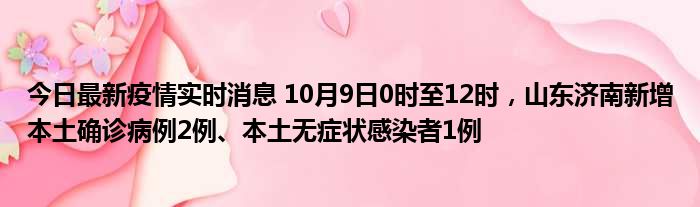 今日最新疫情实时消息 10月9日0时至12时,山东济南新增本土确诊病例2例、本土无症状感染者1例