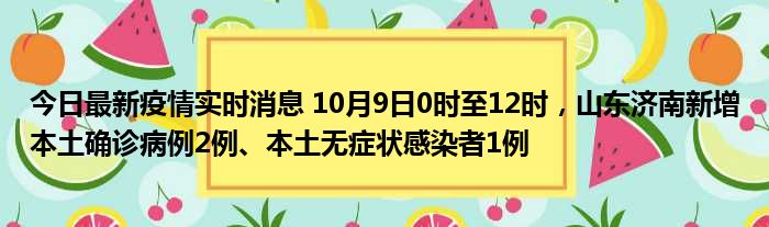 今日最新疫情实时消息 10月9日0时至12时,山东济南新增本土确诊病例2例、本土无症状感染者1例
