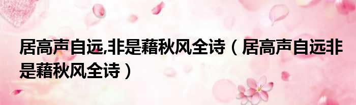 居高声自远,非是藉秋风全诗(居高声自远非是藉秋风全诗)