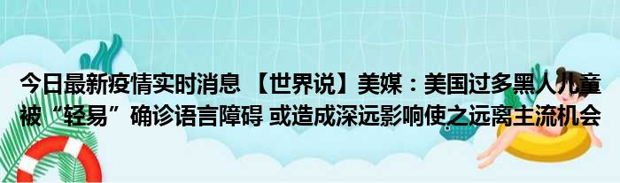 您的位置:首页 >房产频道 > 综合精选 > 今日最新疫情实时消息 【世界说】美媒:美国过多黑人儿童被“轻易”确诊语言障碍 或造成深远影响使之远离主流机会 2022-10-10 04:38:04 • 来源: 导读 免责声明:本文由用户上传,如有侵权请联系删除! 上一篇:mini4配置参数(mini4配置) 下一篇:集体一等功待遇(集体二等功待遇)