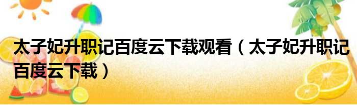 太子妃升职记百度云下载观看(太子妃升职记百度云下载)
