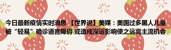 您的位置:首页 >房产频道 > 综合精选 > 今日最新疫情实时消息 【世界说】美媒:美国过多黑人儿童被“轻易”确诊语言障碍 或造成深远影响使之远离主流机会 2022-10-10 05:18:05 • 来源: 导读 免责声明:本文由用户上传,如有侵权请联系删除! 上一篇:盗墓笔记同人原创女主百岁老人(盗墓笔记同人原创女主) 下一篇:信息安全工程师教程第二版(信息安全工程师教程)