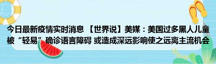 您的位置:首页 >房产频道 > 综合精选 > 今日最新疫情实时消息 【世界说】美媒:美国过多黑人儿童被“轻易”确诊语言障碍 或造成深远影响使之远离主流机会 2022-10-10 05:28:06 • 来源: 导读 免责声明:本文由用户上传,如有侵权请联系删除! 上一篇:2000年是什么年份(2000年是什么年) 下一篇:今日最新疫情实时消息 美国累计新冠肺炎确诊病例超9669万例