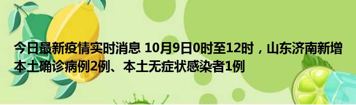 今日最新疫情实时消息 10月9日0时至12时,山东济南新增本土确诊病例2例、本土无症状感染者1例
