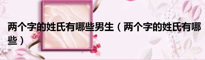 两个字的姓氏有哪些男生(两个字的姓氏有哪些)