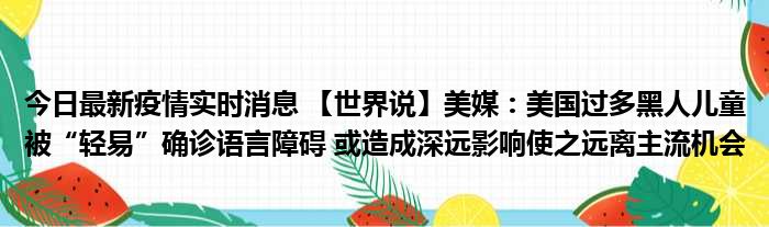 您的位置:首页 >房产频道 > 综合精选 > 今日最新疫情实时消息 【世界说】美媒:美国过多黑人儿童被“轻易”确诊语言障碍 或造成深远影响使之远离主流机会 2022-10-10 06:54:06 • 来源: 导读 免责声明:本文由用户上传,如有侵权请联系删除! 上一篇:苹果6plus电池多少钱?(苹果6plus电池多少钱) 下一篇:英雄联盟如何打空格名字(英雄联盟起名字怎么打空格)