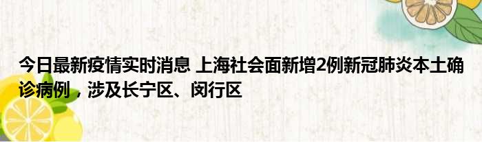 今日最新疫情实时消息 上海社会面新增2例新冠肺炎本土确诊病例,涉及长宁区、闵行区