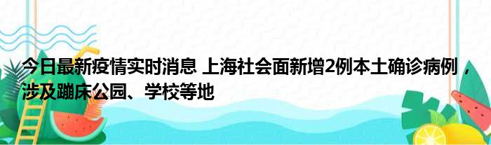 您的位置:首页 >房产频道 > 综合精选 > 今日最新疫情实时消息 上海社会面新增2例本土确诊病例,涉及蹦床公园、学校等地 2022-10-10 07:08:06 • 来源: 导读 免责声明:本文由用户上传,如有侵权请联系删除! 上一篇:咬定青山不放松立根原在破岩中这句话的意思是什么 下一篇:黄瓜门