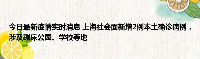 您的位置:首页 >房产频道 > 综合精选 > 今日最新疫情实时消息 上海社会面新增2例本土确诊病例,涉及蹦床公园、学校等地 2022-10-10 07:18:04 • 来源: 导读 免责声明:本文由用户上传,如有侵权请联系删除! 上一篇:调制解调器器是什么(调制解调器是什么设备) 下一篇:景佳人生女儿是在哪一章(景佳人)