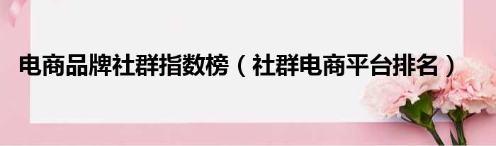 大家好,今天小六子来为大家解答以下的问题,关于电商品牌社群指数榜,社群电商平台排名这个很多人还不知道,现在让我们一起来看看吧!