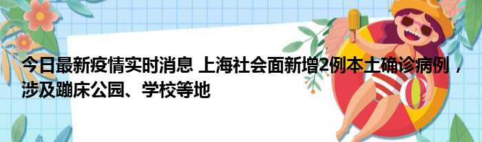 您的位置:首页 >房产频道 > 综合精选 > 今日最新疫情实时消息 上海社会面新增2例本土确诊病例,涉及蹦床公园、学校等地 2022-10-10 07:38:05 • 来源: 导读 免责声明:本文由用户上传,如有侵权请联系删除! 上一篇:电商品牌社群指数榜(社群电商平台排名) 下一篇:写雪的诗句古诗初中(写雪的诗句)